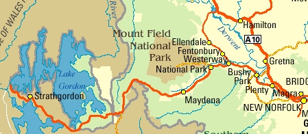 A very scenic and interesting area comprising contrasting views of tranquil, willow lined rivers to the granduer of the Mt Field National Park and Russell Falls. The changing colours of the rugged west coast mountains and the spectacular peaks, snow covered in winter, offer many opportunities to the photographer. The Salmond Ponds at Plenty, the historic towns of Hamilton and Bothwell where well preserved buildings give visitors an understanding of life in years past. |